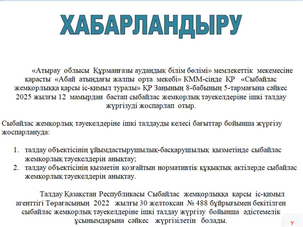 Сыбайлас жемқорлыққа қарсы іс-қимылКраткое описание раздела может быть в несколько строк.